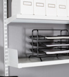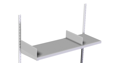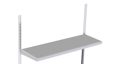 Hylla med enkelfäste för seriemontering på skenpar eller väggfästen med centrumavstånd 900 mm. Hyllans tjocklek vid fästet är 53 mm. Läs mer