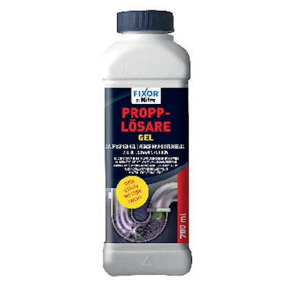 Propplösare Gel Fixor. Propplösare i geléform med desinficerande hypoklorit. Gelén sjunker genom stående vatten utan att lösas upp och når därför proppar långt ned i avloppet. Läs mer