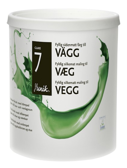 Yunik Väggfärg 7 PVA är en robust väggfärg med hög täckförmåga. Ger en fyllig och sidenmatt yta som är lätt att hålla ren. Resultatet blir ett vackert, mjukt och enhetligt utseende oavsett betraktningsvinkel. Används inomhus till nya och tidigare målade väggar och tak. Kan användas till på betong, gips, tapet, glasfiberväv och filt i de flesta rum. Kombinationen av en sidenmatt och robust yta gör Yunik Väggfärg 7 idealisk till ytor med slitage som t.ex. vardagsrum, sovrum och korridorer. Max. 80 % RF. Tag bort mesta möjliga färg från verktygen före rengöring i vatten. Flytande färgrester skall inte hällas i avloppet, utan lämnas till lokal återvinningsstation.